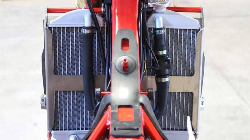 AXP Racing radiator cages stand out thanks to their 3 points fixing system. Indeed, this system keeps the original air deflector, it does not interfere with the maximum steering of the handlebar and forms a real protective cage around the radiators. Aluminium 4mm thick – The complete hardware is included in the package