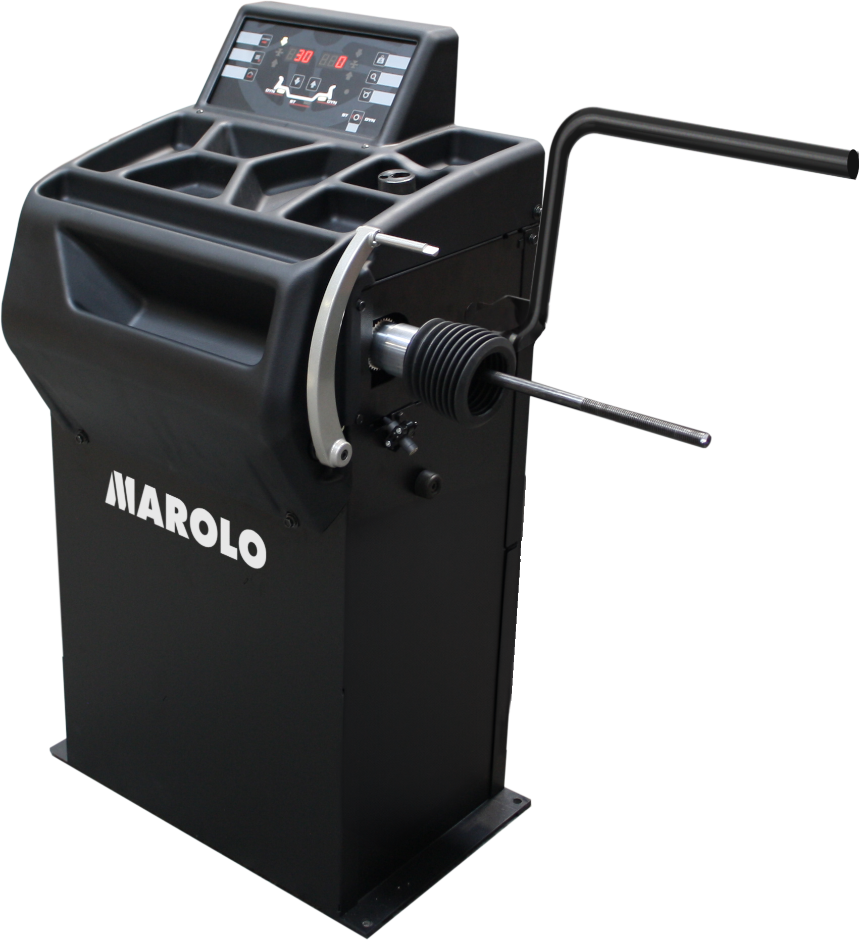 Electronic motorized wheel balancer with counter-rotation brakingrnsystem (MT25 model).rnSuitable for traditional motorcycle wheels, single-sided rear wheelsrn(monobrace), scooter, quad, and SSV wheels up to 30 kg.rnCorrection mode with LASER line for fast and safe positioning ofrnadhesive weights inside the rim.rnAutomatic gauge to measure rim diameter and distance up to 24�, withrnan innovatively designed tip to avoid interference with brake discs.rnDynamic balancing (two-level imbalance correction)rn�Split� function to distribute weights evenly for large corrections.rnSelf-diagnosis and self-calibration.rnLow-speed balancing (75 rpm).