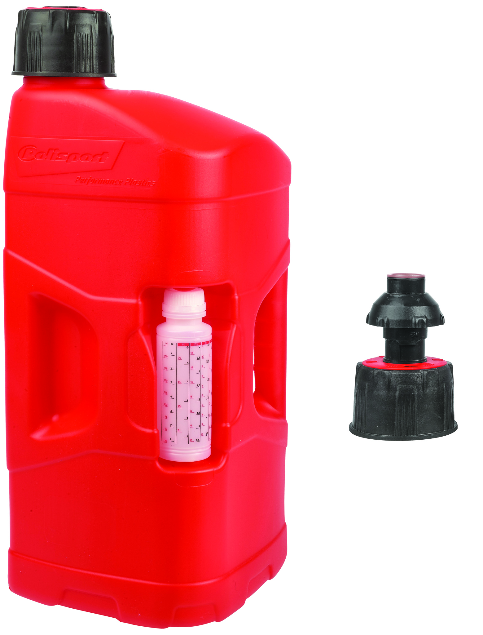 Polisport ProOctane is much more than a regular utility can. The can is produced with highly durable and resistant walls and includes a leak-proof cap for transport. The cap has also an oil/fuel mix gauge so you can identify the fuel mix and, with the utility can, comes an oil mixer included. The two-handle design was developed to make the filling process easy and effortless if you’re using the Hose filling system or the Quick Fill Spout. There are also some accessories available to use with Polisport?s ProOctane: The Filling Hose + Cap, that will make the re-filling process easy, with a fluid stream of gas. This includes an auto-stop system so you can avoid the spillage of fuel; Also available separately, the Filling Hose (w/ cap); and very soon; the quick fill system for those who need to make quick re-fills of fuel.