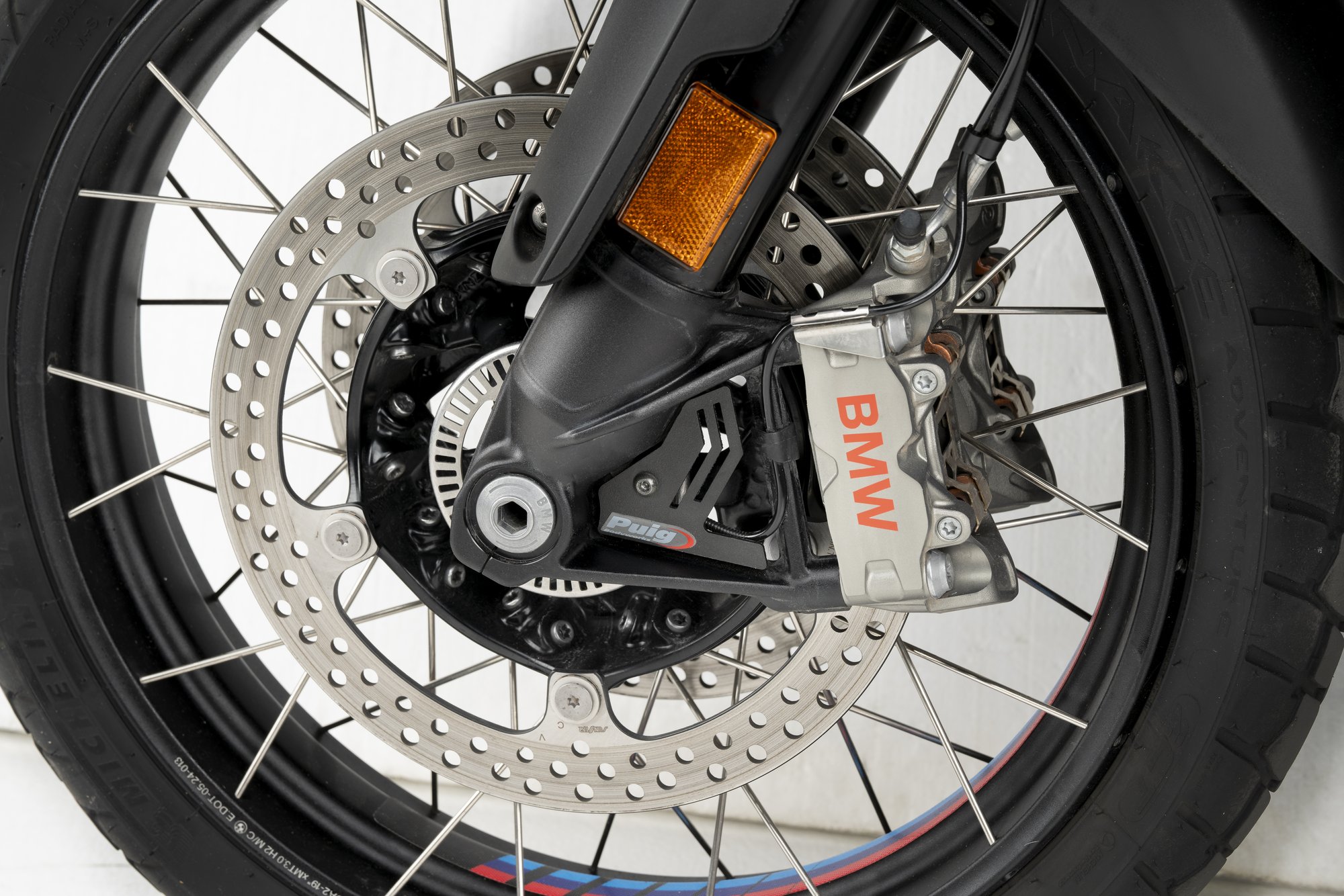 Thanks to the innovative protector developed by Puig, you can safeguard one of the most exposed and vulnerable components of your BMW R1300GS: the front wheel ABS sensor. This sensor is essential for the proper functioning of the braking system and is located in a particularly unprotected position, making it susceptible to damage in demanding conditions, whether from impacts by stones, mud, or any obstacles during your rides.