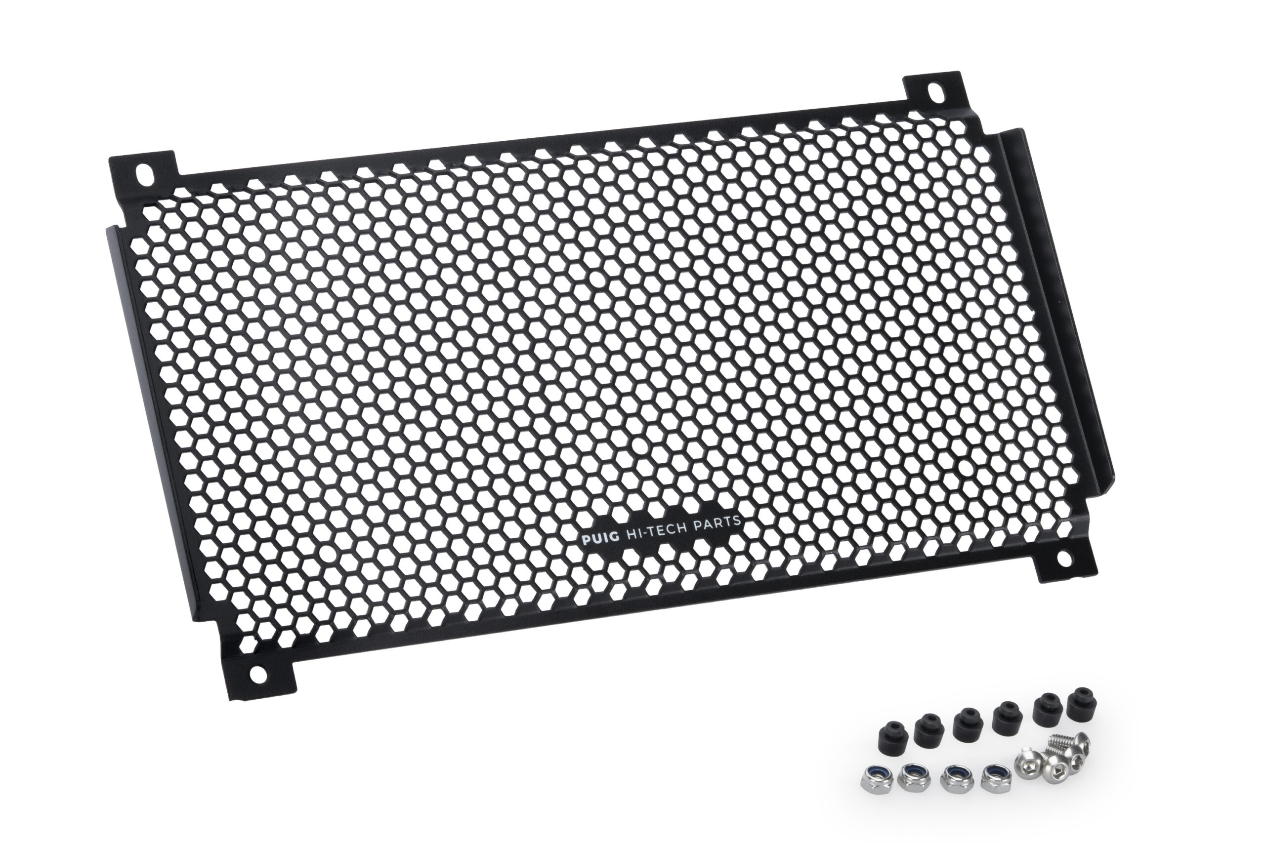 Aesthetically, the protector stands out for its hexagonal mesh design in the perforated sections, which not only enhances its visual appeal but also maximizes airflow for cooling. Made of high-strength aluminum, it features a textured painted finish that enhances its robust and high-quality appearance while providing excellent protection against oxidation and wear.
