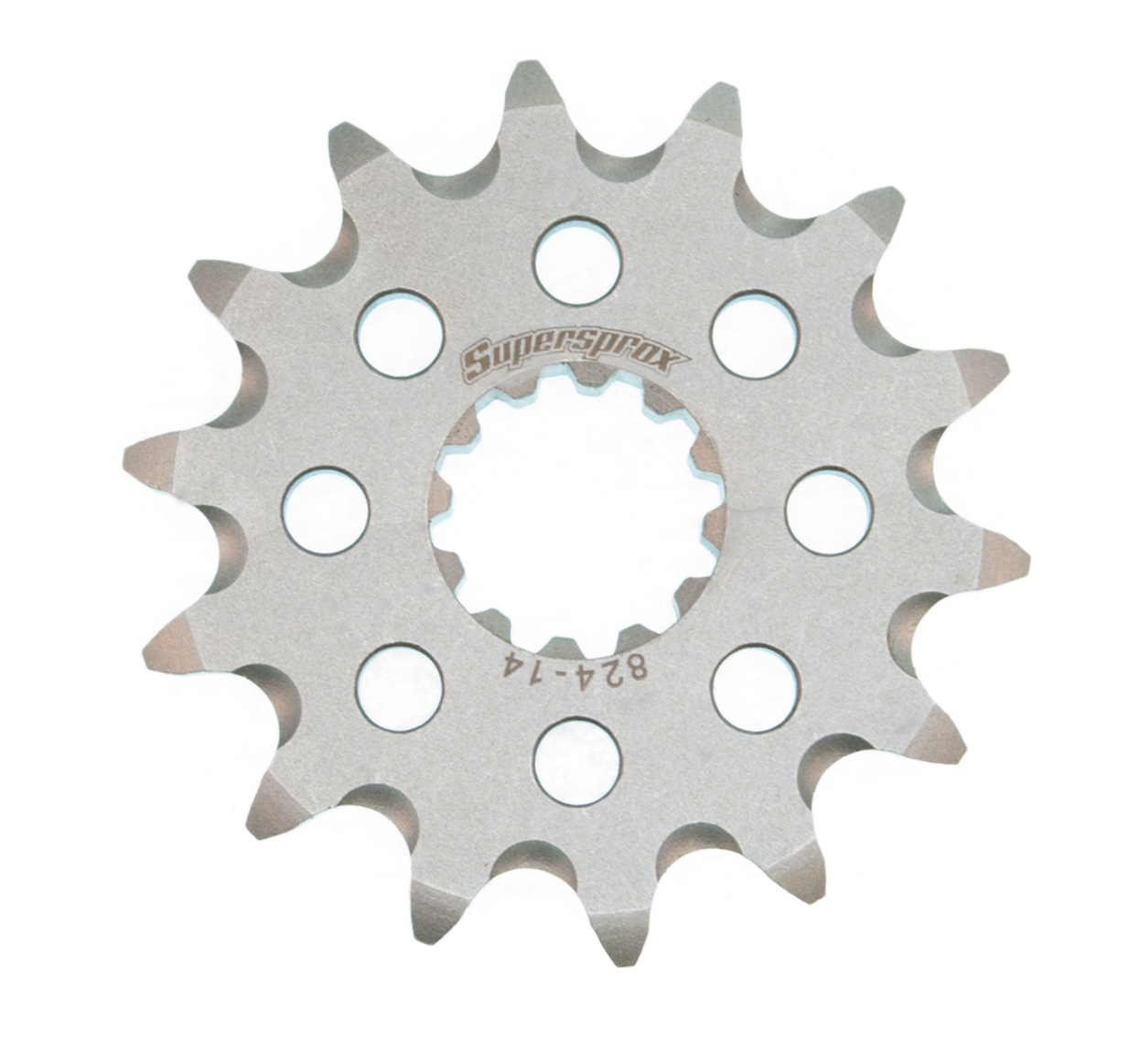 Supersprox – Front sprockets. Made from SCM-435 steel to ensure a long life. Ultra hard surface layer reduces friction to prevent power loss caused by chaindrag. Fully lightened with radial holes for off road and street bikes. Grooved teeth for off road applications that allows good dirt removal.